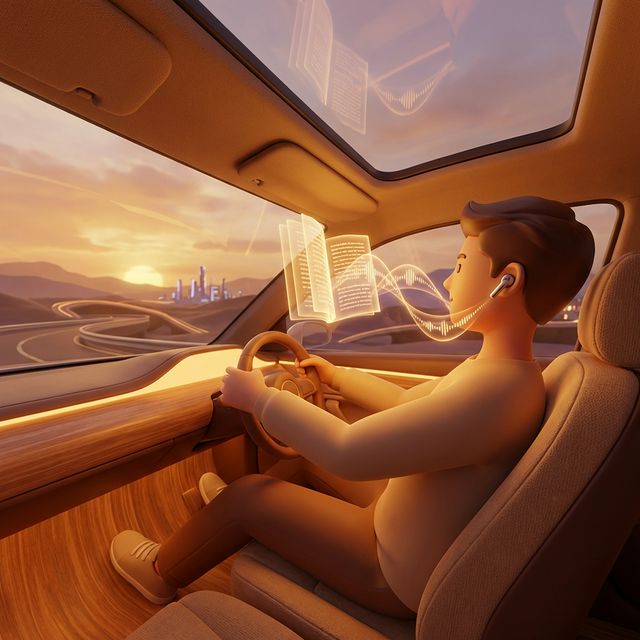 Users clone their own voice (Voice Lab) to read PDF documents or articles to them while they drive. It is a personalized podcast.