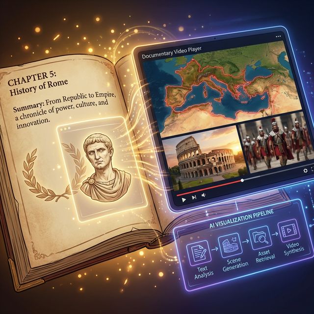 Scenario: "History of Rome." Workflow: Paste the textbook chapter summary. Result: A documentary-style video with maps, statues, and historical reenactment footage.