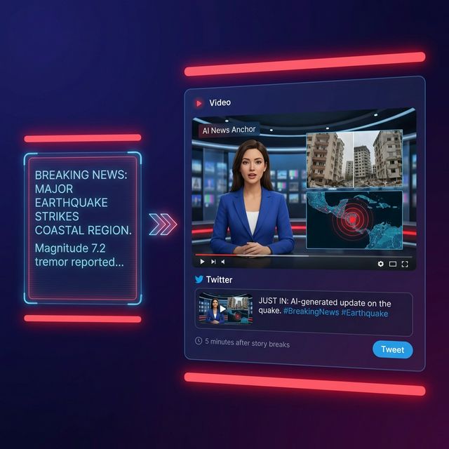 Scenario: "Breaking News." Workflow: Paste the AP wire text about an earthquake. Result: A 60-second video with news footage, map overlays, and a "News Anchor" voiceover. Published to Twitter 5 minutes after the story breaks.