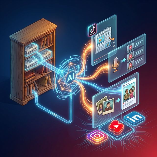 Repurpose your archives into social-native content. A 10-year-old article can become a TikTok series. A podcast episode can become 50 video clips. Unlock value from content you've already created.