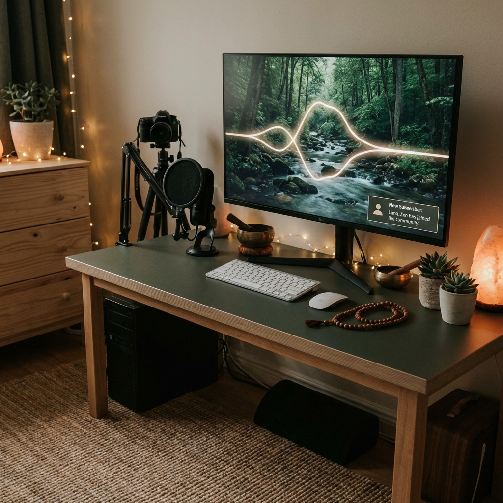 Niche: Relaxation/Sleep. Workflow: Generate 10 hours of "Rain Sounds on a Tin Roof." Loop a calm AI-generated background. Add an AI voice guiding a "Body Scan" meditation. These videos get millions of views and have incredible watch time (people sleep to them).